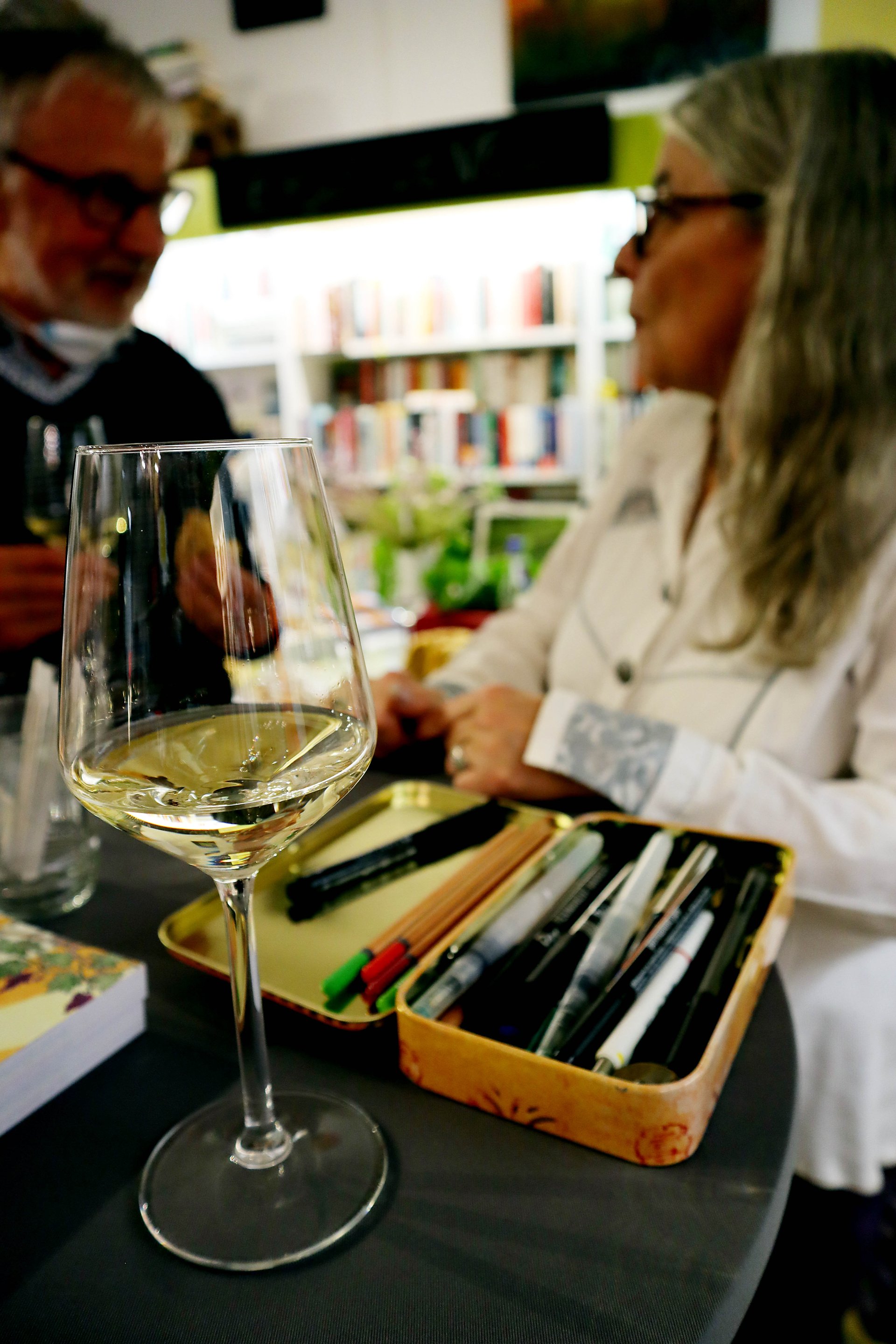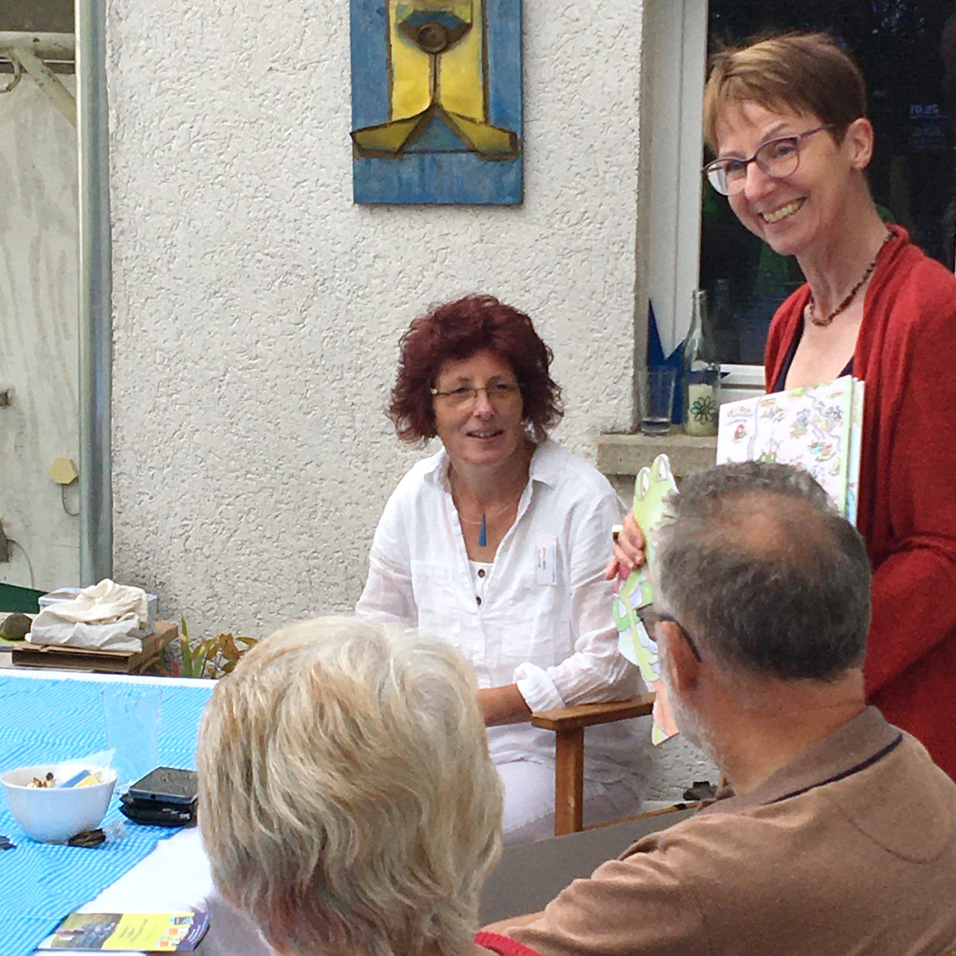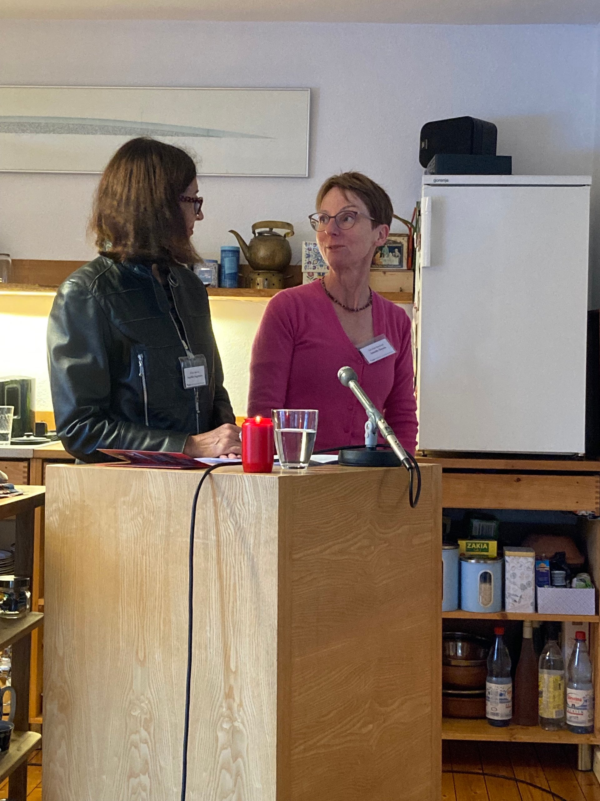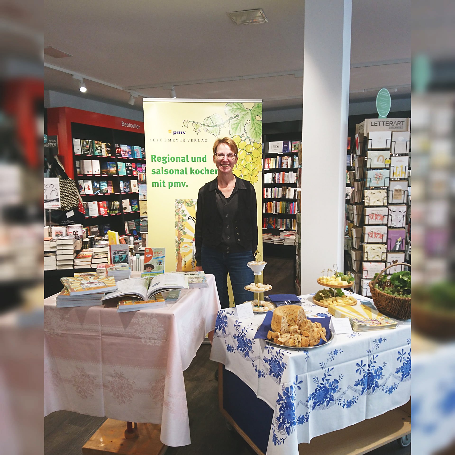 Künstlerin und Verlegerin sind stolz auf ihr neues Kochbuch. Zur Präsentation gab es anregende Gespräche sowie einen selbstgebackenen Riesling-Bund (aus Wein im Topf).