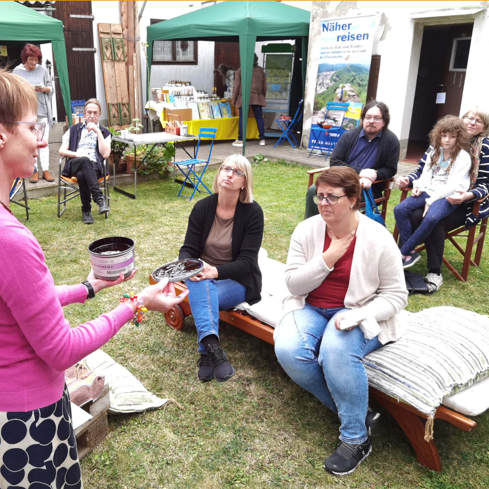 Verlegerin Annette Sievers präsentiert zum Auftakt unserer Regional-Reise Wein im Topf.