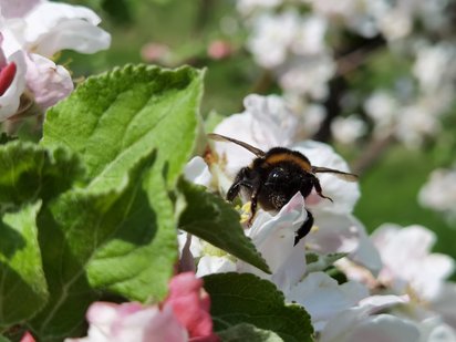 Ein paar Wochen waren schon vergangen, da wurden aus den kleinen Knospen wunderschöne Blüten. Kaum waren sie da, schon kamen die fleißigen Helferlein – von der großen Hummel über die Hornisse bis zur kleinen Biene – vorbeigebrummelt, um die Blüten zu bestäuben. Ohne diese kleinen Helden hätten wir Menschen nicht allzu viel zu lachen, da es ohne eine Bestäubung auch keine Früchte gäbe.