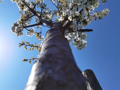 Während meines abwechslungsreichen Praktikums habe ich nicht nur viel erlebt, sondern auch viel gesehen. Jeden Mittwoch habe ich mich während meines Praktikums auf den Saulheimer Weidenberg begeben, um aktiv festzuhalten, wie sich von Mal zu Mal die rheinhessische Landschaft aus dem Winterschlaf in die Sommerhitze entwickelt. Von Mitte April bis Ende Juni konnte ich vieles mitverfolgen. Darunter auch einen Kirschbaum.