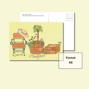 Gedruckt auf 300 g Natur-Karton, Rückseite beschreibbar.