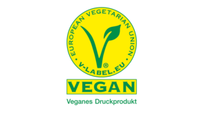 Klimaneutraler, veganer Druck in Deutschland auf 100 % Recyclingpapier. Ausgezeichnet mit Blauem Engel.